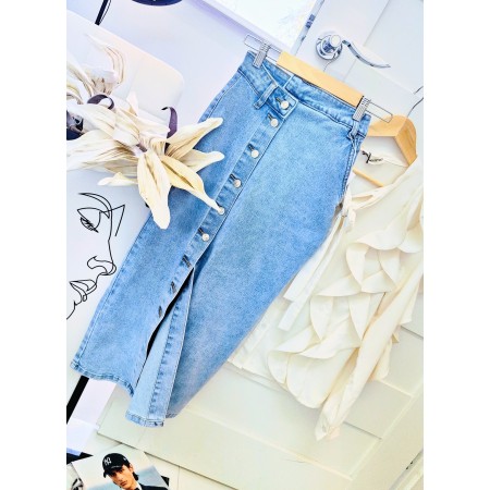 Wysoki stan. Wyszczuplająca dżinsowa spódnica. Ozdobny pas